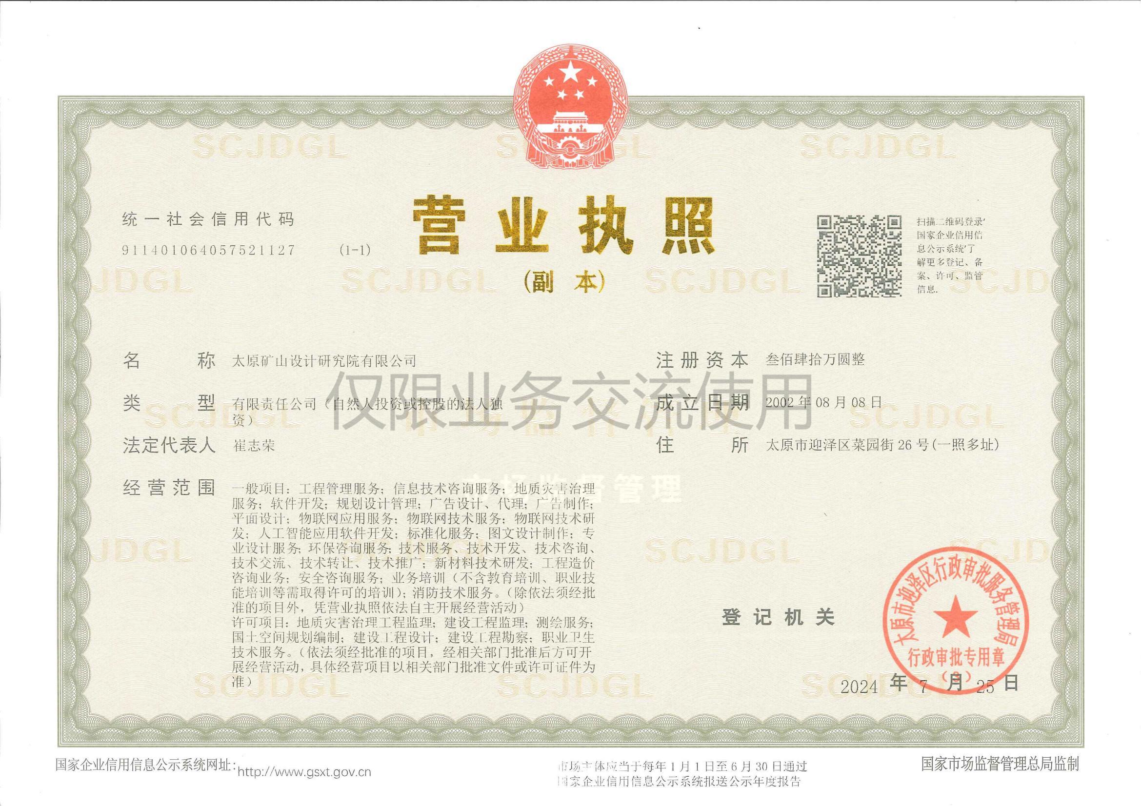公司主要從事礦山采選尾工程設計、智能化及自動化礦山、建設綠色礦山、工程技術咨詢、規(guī)劃設計管理、施工勞務分包、土地規(guī)劃、地質災害治理服務、安全生產技術服務、軟件開發(fā)及測繪服務;煤礦、非煤礦山設計;煤礦、非煤礦山、危險化學品安全評價(業(yè)務范圍:煤炭開采業(yè);金屬、非金屬及其他礦采選業(yè);石油加工業(yè),化學原料、化學品及醫(yī)藥制造業(yè));非煤礦山、冶金等工商貿企業(yè)、危險化學品從業(yè)單位安全生產標準化評審;公共場所衛(wèi)生、生活飲用水、公共場所集中中央空調通風系統的檢驗、檢測、評價;職業(yè)健康檢測檢驗;建設項目職業(yè)病危害評價、職業(yè)危害因素檢測與評價;安責險技術服務;業(yè)務培訓等工作。